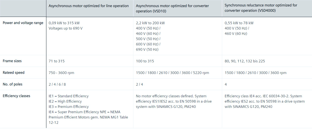 지멘스는 표준 전기 모터에서 모션 제어 어플리케이션을 위한 서보 모터, 고전압 및 DC모터에 이르는 모든 산업용 모터 (동기식 및 비동기식)을 생산하고 있습니다.
